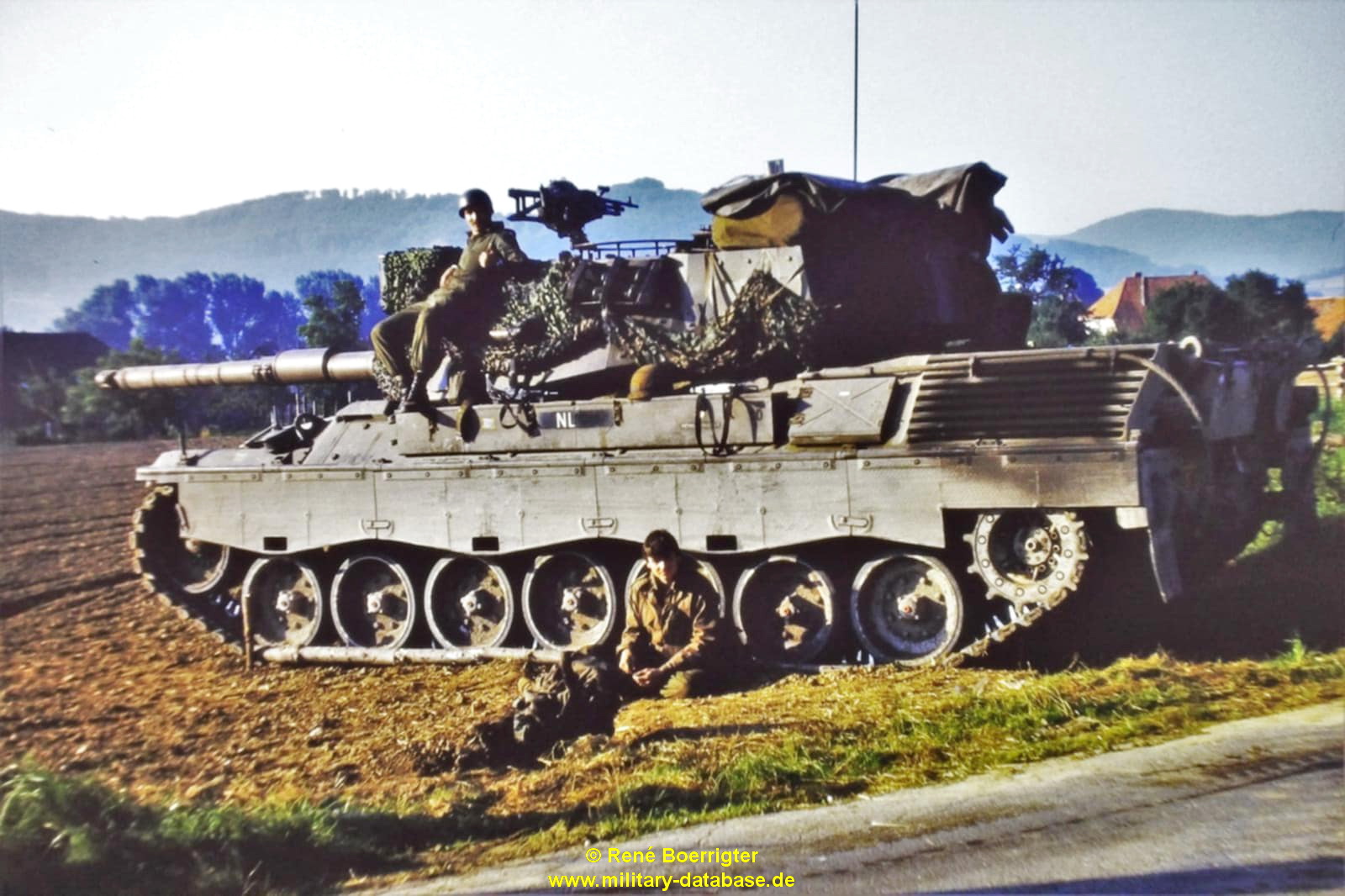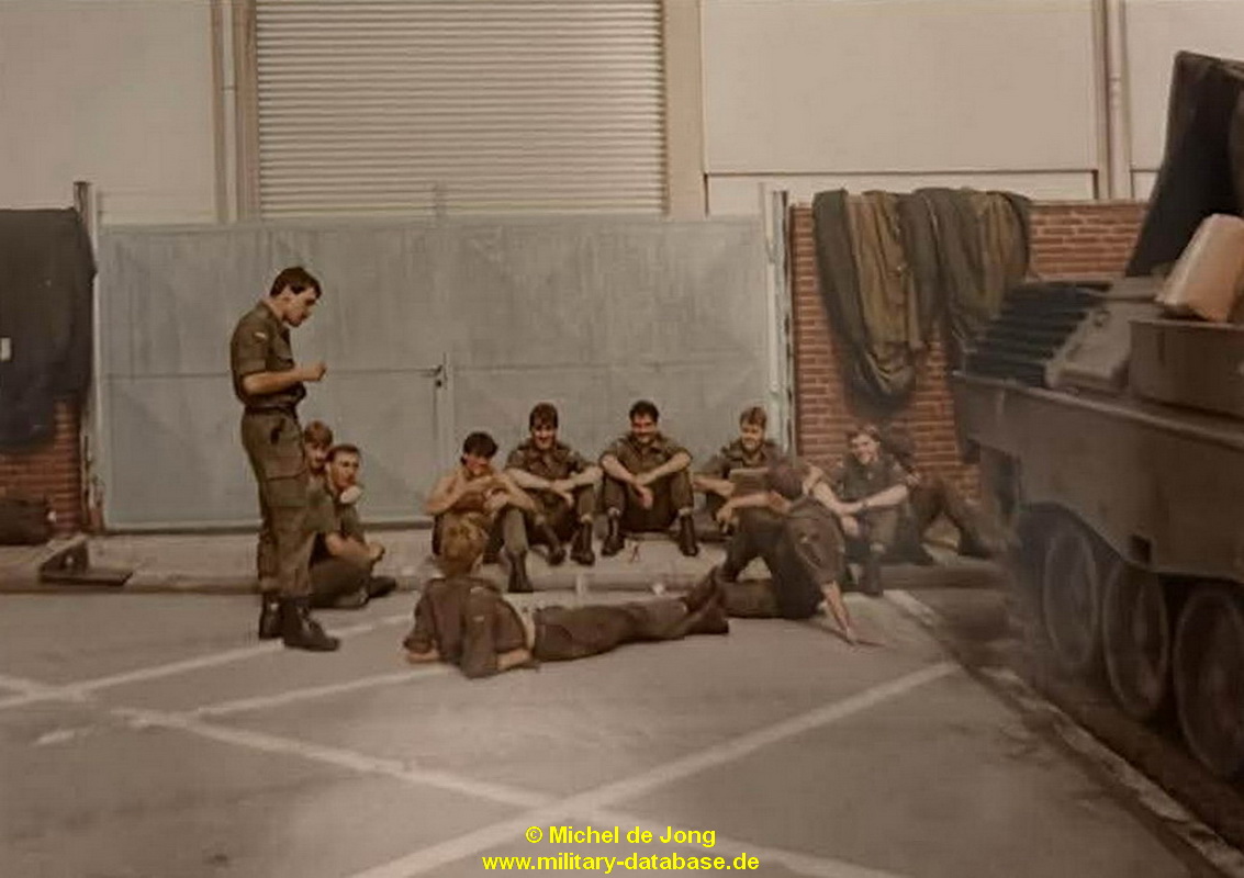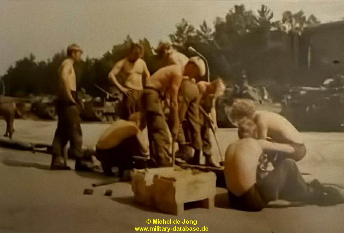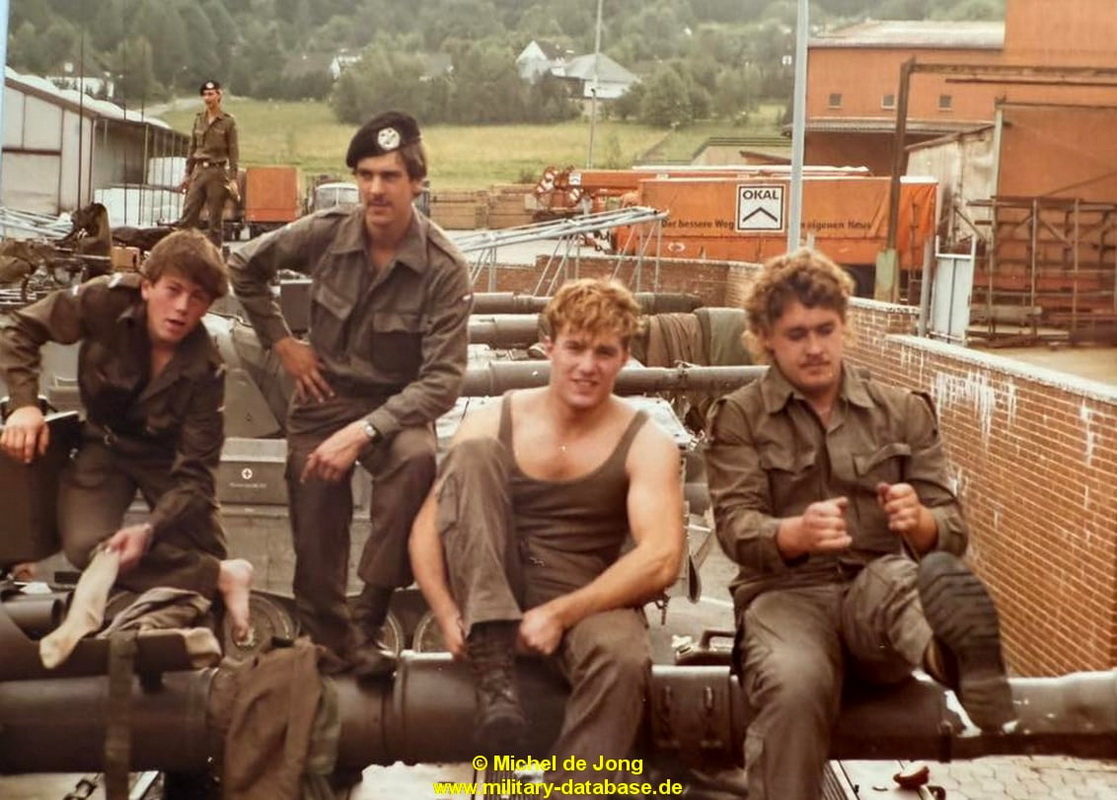 Seit mittlerweile Jahrzehnten sprechen Jürgen und ich über diese Übung. Wie konnten wir es schaffen mit nur Bildern im Kopf und ein paar wenigen Anhaltspunkten da irgendwie was von zu nutzen um weiteres zu Erfahren und von Bildern dazu mal ganz zu schweigen?! Alleine das Übungsjahr machte mir schon zu schaffen, wer kann schon so genau sagen wann was gelaufen ist..? Dann kam Jürgen ins Spiel und meinte.: Du, das ist ganz einfach. Ich weiß genau während dieser Übung spielten sie ganz oft “There must be an Angel” von Eurythmics. Und wenn auf eines Verlass ist, dann auf Jürgen sein “Elefantengehirn”. Das konnte ich damit schon mal als gesichert hinnehmen. Also hatten wir ganz sicher schon mal das Übungsjahr 1985. Das selbst konnten wir noch auf die Sommerferien eingrenzen, da die ÜbTruppe nicht nur in Lauenstein auf dem OKAL-Parkplatz stand, sondern auch in Salzhemmendorf an der KGS. Und das konnten die nur während der Ferien machen, also waren wir im Juli / August 1985 gelandet…bis hier hin schon mal Top. Dann meinte Jürgen zu mir, frag doch mal Tina, die hat auch Bilder gemacht. Und siehe da, sie hatte tatsächlich eines. Und zwar ausgerechnet eines mit einem blonden Soldaten, mit dem wir Fußball gespielt hatten die ganze Zeit. Auch hier wußte Jürgen sofort, das ist Michel. Jetzt mal im ernst, wie kann man sich denn bitte an sowas erinnern 🙂 Natürlich stimmte das auch, wir kamen der Sache einen großen Schritt näher. Desweiteren war auch ein Leopard 1 zu sehen, wo es jetzt galt rauszubekommen was für ein Leopard das genau ist. Und wenn ich jemanden Frage bezüglich niederländischer Leoparden, dann muß unweigerlich unser Freund und Unterstützer Peter van Iren ins Spiel kommen. Und sein geschultes Auge und enormes Wissen kam sofort zum Tragen. Er schrieb.: Das 11, 59 und das 101 Tankbataljon, und das 104 Verkenningsbataljon hatten den im Bild gezeigten Leopard 1V !!!