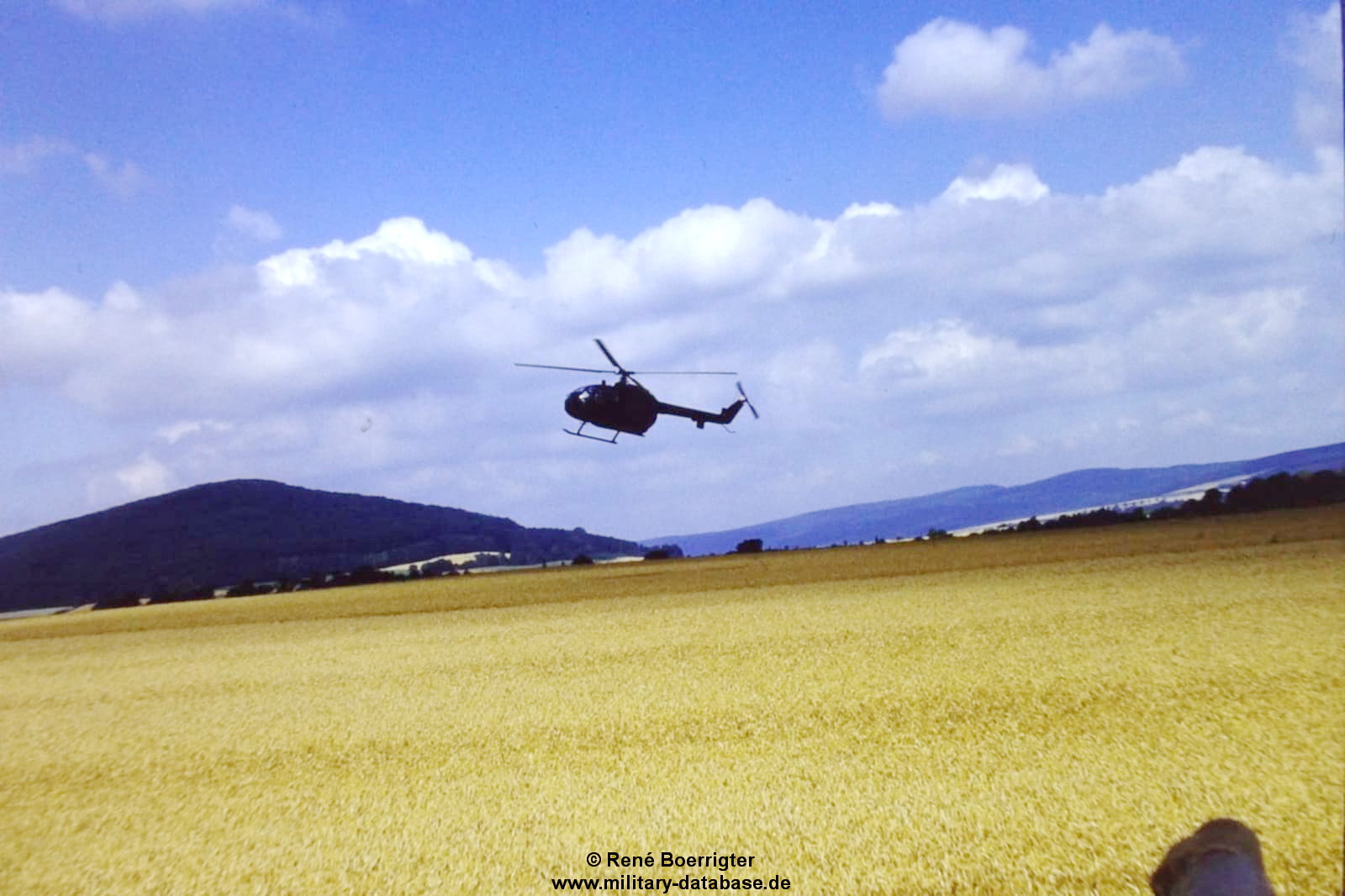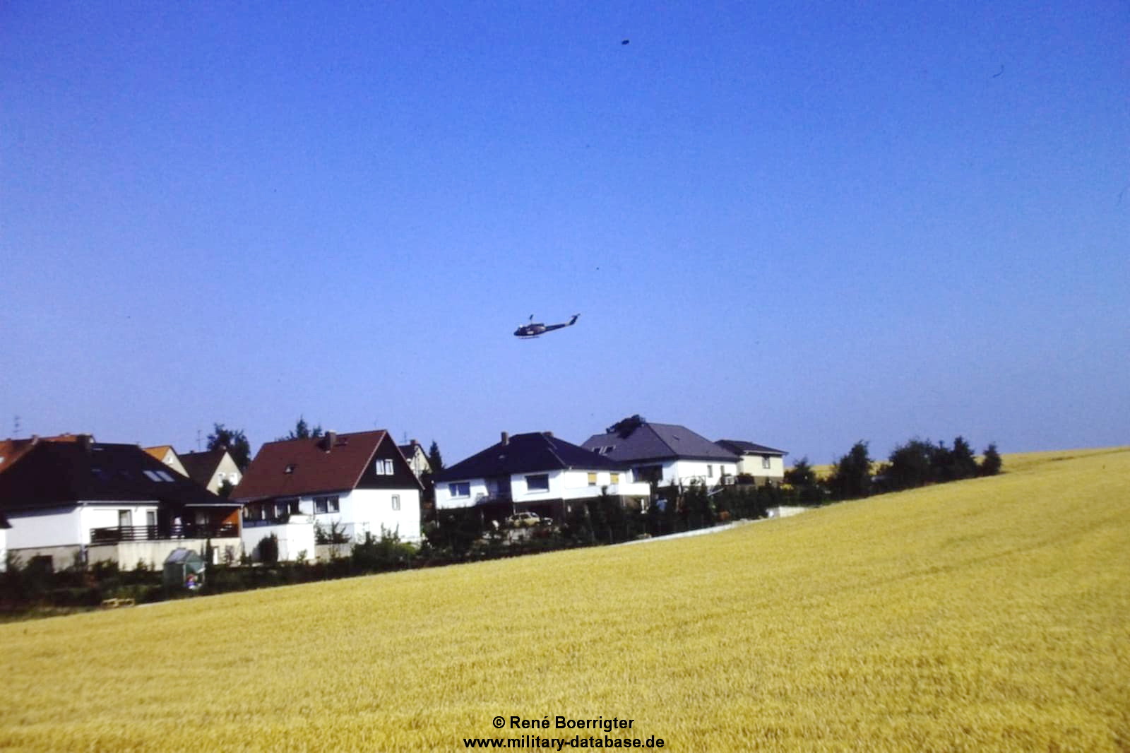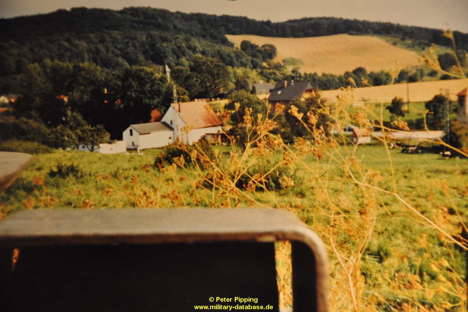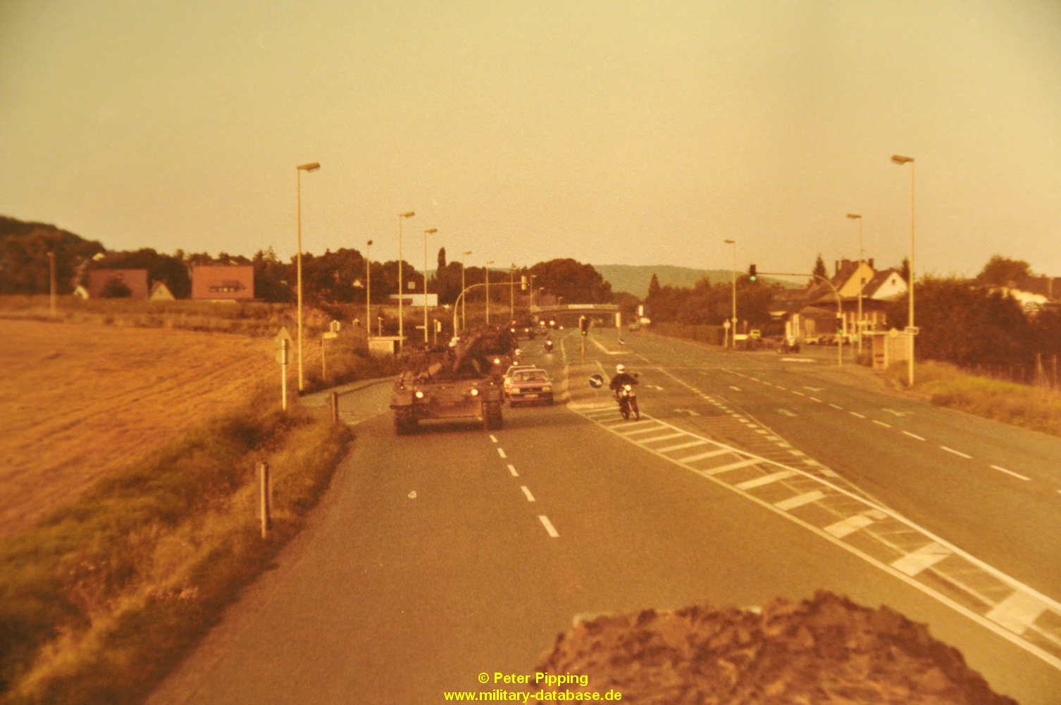 Das ganze noch ergänzt mit Jürgen seinen Bildern hatten wir mehr als wir uns jemals erhofft hatten. Ich kann mich noch gut erinnern wie die Jungs abgezogen sind. Die Mädchen waren tottraurig das die hübschen Männer jetzt weg sind, und wir, weil die Panzer weg waren 🙂 Wir sind mit dem Fahrrad noch bis nach Ahrenfeld und Heinsen hinterher. Sie hatten uns vorher die Route genannt, da sind wir mit den Fahrrädern vorweg gefahren. Kurz vor Ahrenfeld am Fuß des Thüster Berges waren sie dann schon hinter uns, ich schmiß mein Fahrrad an die Seite und stellte mich direkt an den Weg zum letzten Gruß wenn man so will. Da hätte es mich fast dahingerafft. Der erste Leopard rutschte in den Graben wo ich stand ( der konnte mich natürlich nicht sehen, ich stand zwischen den Hecken ) und ziehte das aber mal vollkommen durch. Knüppel, Äste und Erde flogen durch die Luft, und ich konnte nach hinten nicht weg, und der fuhr mit allem was das Boot hergab weiter. Ich war keine 10cm mit meinem Körper vom komplett durchdrehenden Panzer entfernt…das werde ich niemals vergessen. Danach sammelten sie sich nochmal in Ahrenfeld mitten im Ort am Kriegerdenkmal wo wir es gerad noch hinschafften, dann fuhren sie los und waren seit dem nicht mehr gesehen. Richtung Rittergut Heinsen, und dann vermutlich in Richtung Esbeck und weiter bis nach Eime.